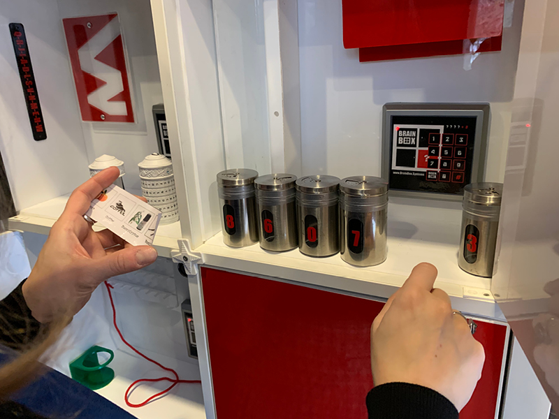 Mit der mobilen Brainbox hast Du einen tollen Blickfang und eine attraktive Beschäftigung für Deine Gäste. Von zwei Seiten bespielbar eignet sich die Box um in zwei Teams á 2 bis 3 Personen gegeneinander anzutreten. Ca. 15-20 Minuten Rätselspaß lassen kreative und rätselwütige Köpfe heiß laufen.